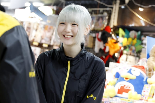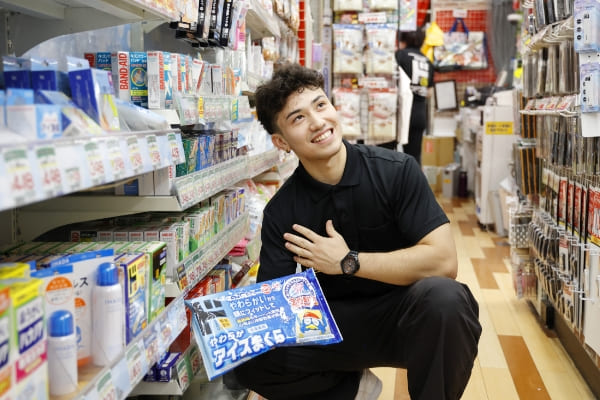 高校生になったのでお金を貯めたい、好きな推しのイベントやグッズにもお金を使いたい。そんな理由でアルバイトを始めました。ドン・キホーテを選んだのは、家の近くにも店舗があってなじみがあったから。ネットで探して、募集があった今の店舗に決めました。仕事は品出しと、防犯です。倉庫から商品を出して棚に並べたり、商品に万引き防止のクリアテープやタグをつけたりする仕事です。商品がしまってある場所や陳列場所、商品ごとにどのテープやタグをつけるのか、最初の頃は覚えることがたくさんあって大変でした。でも分からないことは、聞けばすぐに先輩スタッフが教えてくれます。「経験を積んで、早く仕事を覚えよう」と、自分から積極的に作業をするようにしていたら、半年ほどで仕事に慣れることができました。最初に配属されたのが、偶然、自分が大好きなキャラクター商品を扱う売り場。今もその売り場にいるのですが、新商品がすぐに見られるのが嬉しいです。終業後に商品を買って帰ることもあります。仕事中は、キャラクターをできるだけ見やすく、きれいに陳列するように心がけています。